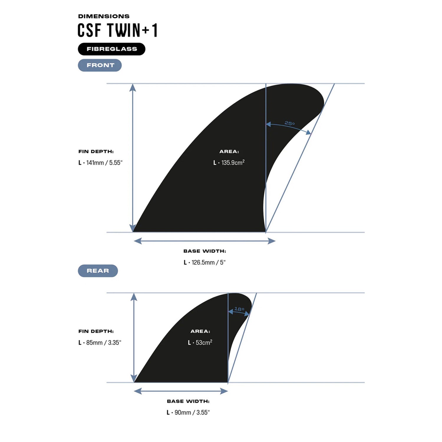 With the addition of the small stabilizer fin, this set enhances drive and provides greater control. The large side fins can be used in a standalone twin fin configuration and are compatible with almost any board shape or size, delivering optimal performance in surf conditions between 1 and 6 feet.